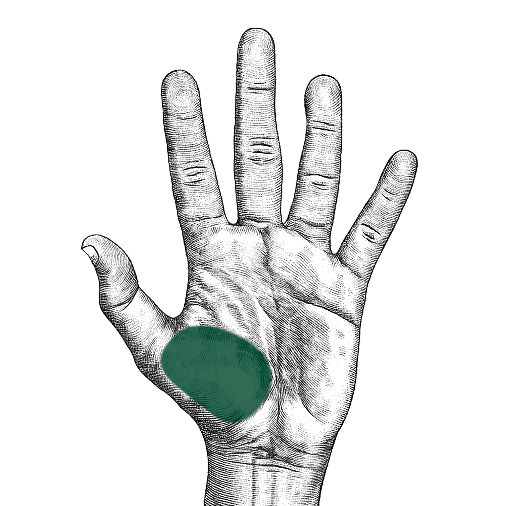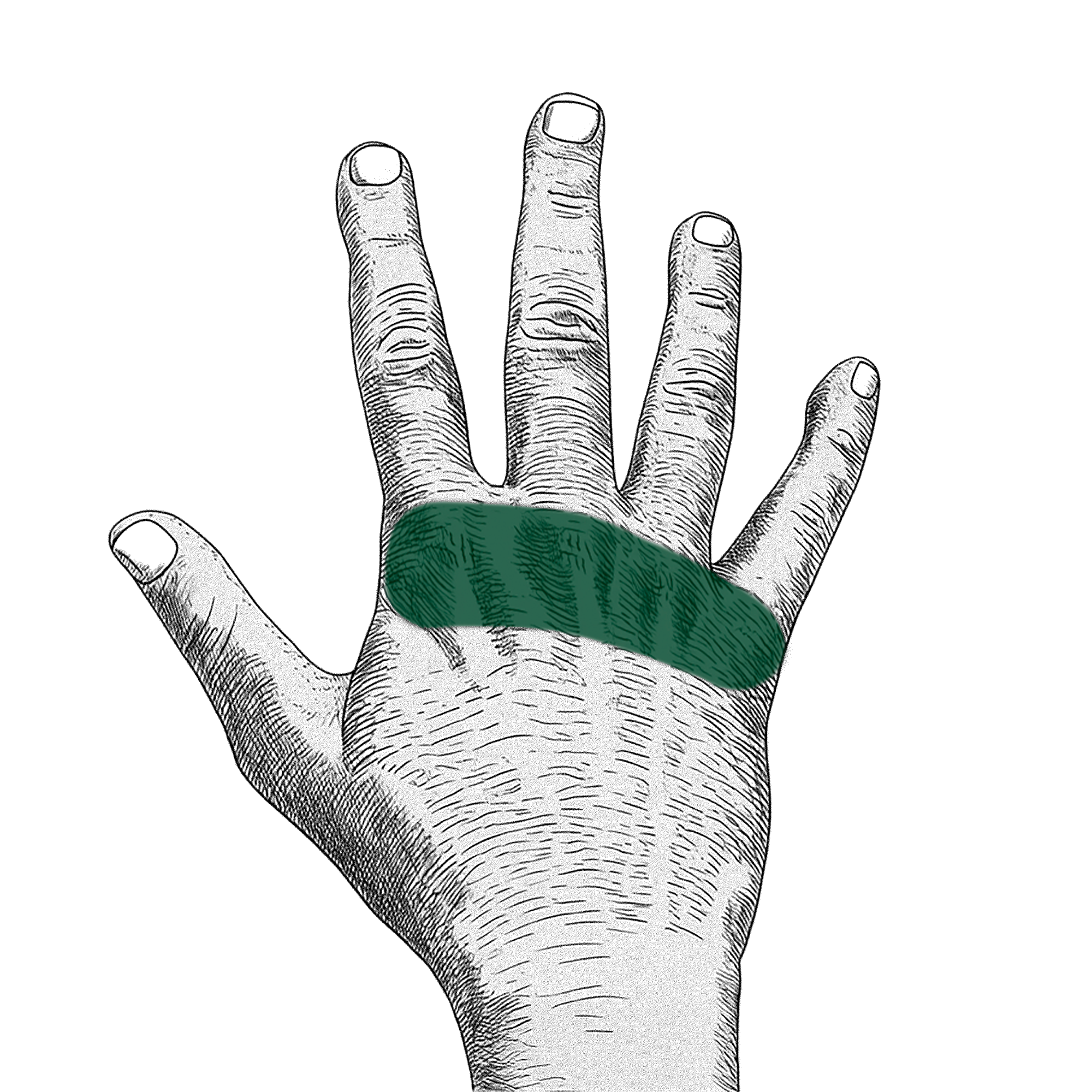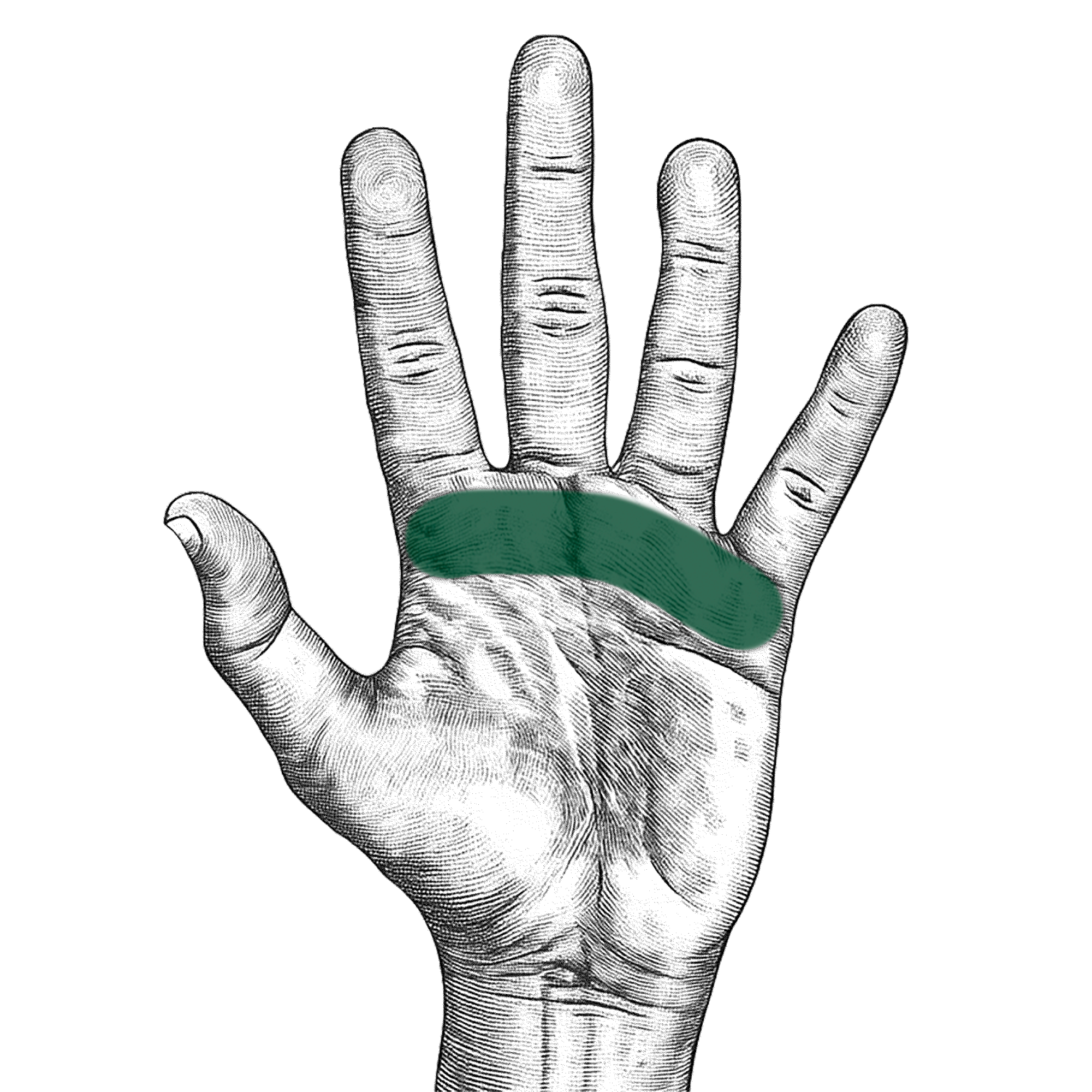 Håll handen med handflatan uppåt och glid med fingrarna över tummens bas. Om din hunds revben känns så här – svåra att känna alls, under ett tjockt lager fett – så är den kraftigt överviktig.