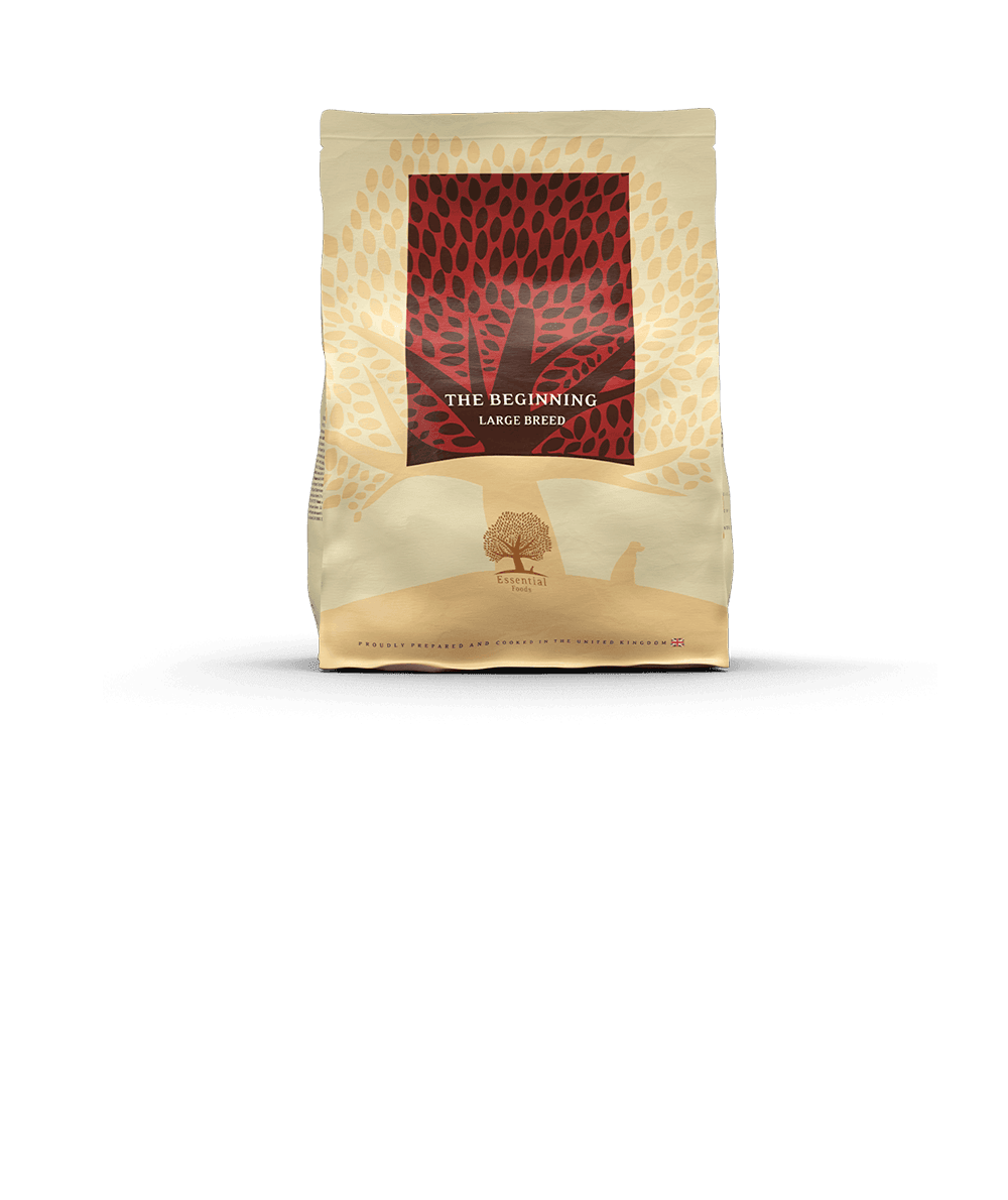 THE BEGINNING LARGE BREED är vår skräddarsydda måltid till valpar som vid vuxen ålder väger över 15 kg. Måltiden är fullpackad med färska ingredienser som kyckling, anka, lax, öring och ägg.