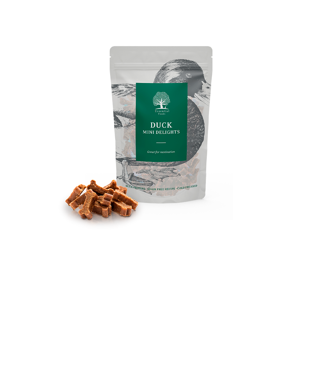 MINI DELIGHTS är godbiten till valpar som slår alla andra! Ett spannmålsfritt recept med massor av kött och perfekt till träning, promenaden – eller som en trygg följeslagare när din valp ska ut och upptäcka den stora världen tillsammans med dig.