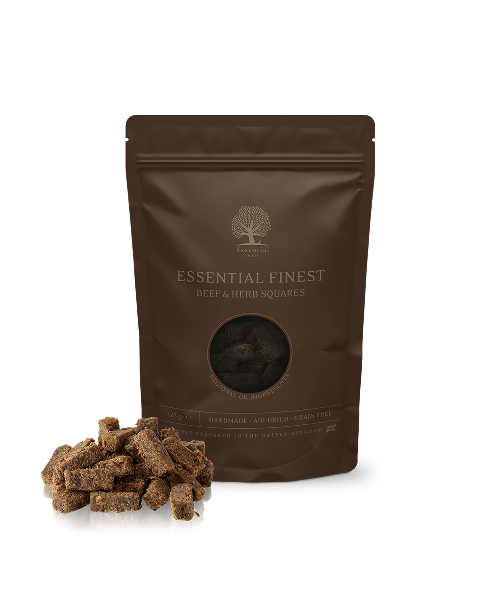 Njuta till fullo av promenaden, samtidigt som du har de FINASTE godbitarna på turen, låt oss presentera vårt senaste format: The SQUARES. Tillagade för hand med rikliga mängder högklassigt nötkött, kombinerat med härliga örter, detta är ESSENTIAL FINEST BEEF & HERB SQUARES.