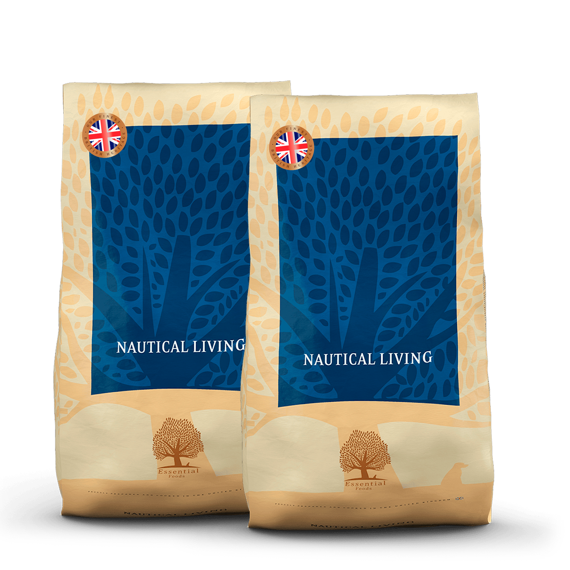ESSENTIAL NAUTICAL LIVING är vårt kompromisslösa foder för vuxna hundar av alla raser, som ej innehåller spannmålsprodukter. Ett fullvärdigt foder med rikliga mängder färsk lax, öring och säsongfisk. “BOF” godkänt med mål att stabilisera blodsockerhalten under hela dagen.